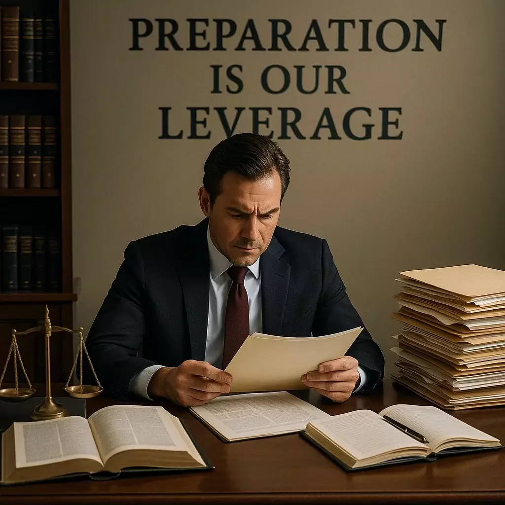 We prepare every case like it’s going to trial so we don’t have to. Preparation creates leverage.